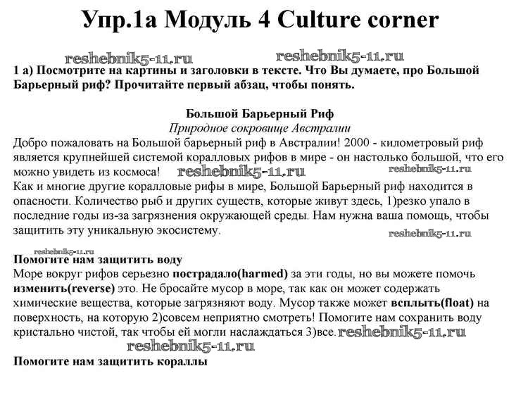 Готовая домашняя работа с ответами по Английскому языку за 10 класс Афанасьева, Дули, Михеева, Оби, Эванс Учебник Spotlight Просвещение 2015 ФГОС - Culture corner 1a