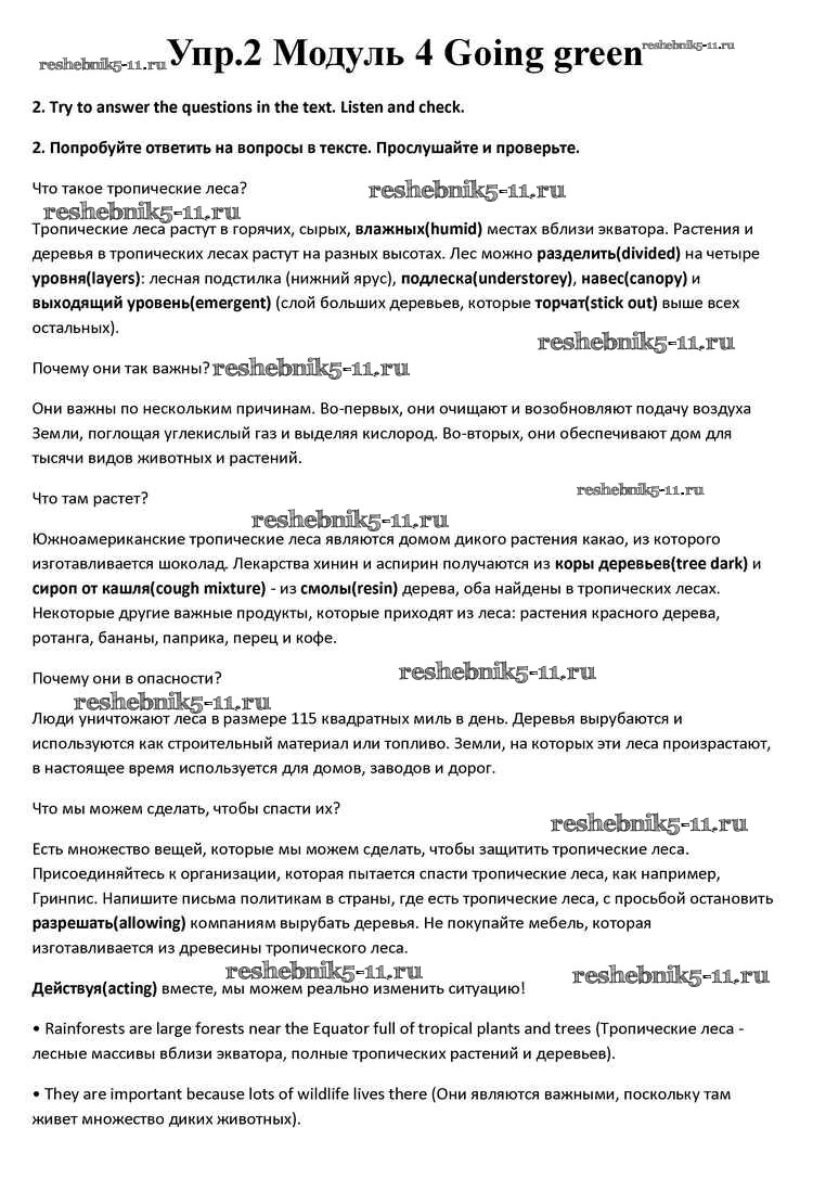 Готовая домашняя работа с ответами по Английскому языку за 10 класс Афанасьева, Дули, Михеева, Оби, Эванс Учебник Spotlight Просвещение 2015 ФГОС - Going green 2