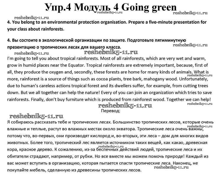 Готовая домашняя работа с ответами по Английскому языку за 10 класс Афанасьева, Дули, Михеева, Оби, Эванс Учебник Spotlight Просвещение 2015 ФГОС - Going green 4