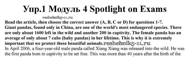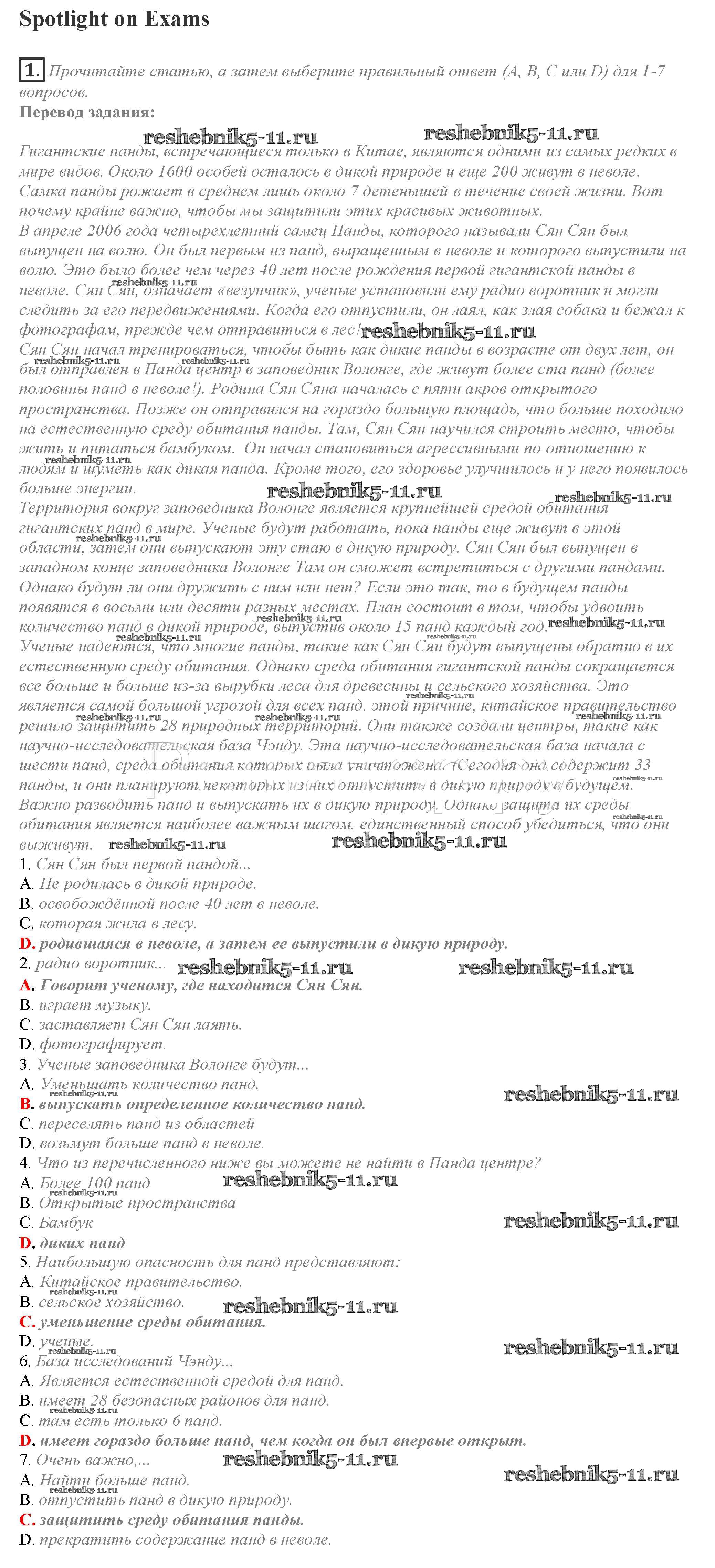 Готовая домашняя работа с ответами по Английскому языку за 10 класс Афанасьева, Дули, Михеева, Оби, Эванс Учебник Spotlight Просвещение 2015 ФГОС - Spotlight on Exams 1
