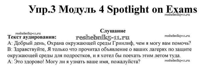Готовая домашняя работа с ответами по Английскому языку за 10 класс Афанасьева, Дули, Михеева, Оби, Эванс Учебник Spotlight Просвещение 2015 ФГОС - Spotlight on Exams 3