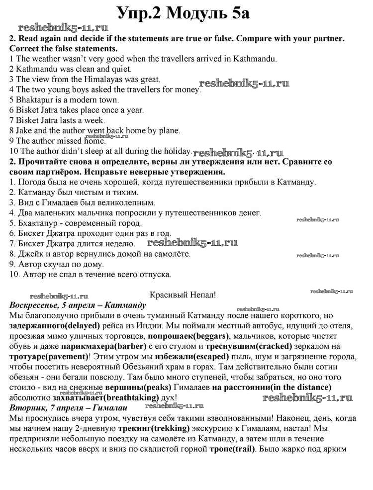 Готовая домашняя работа с ответами по Английскому языку за 10 класс Афанасьева, Дули, Михеева, Оби, Эванс Учебник Spotlight Просвещение 2015 ФГОС - Часть 5a 2