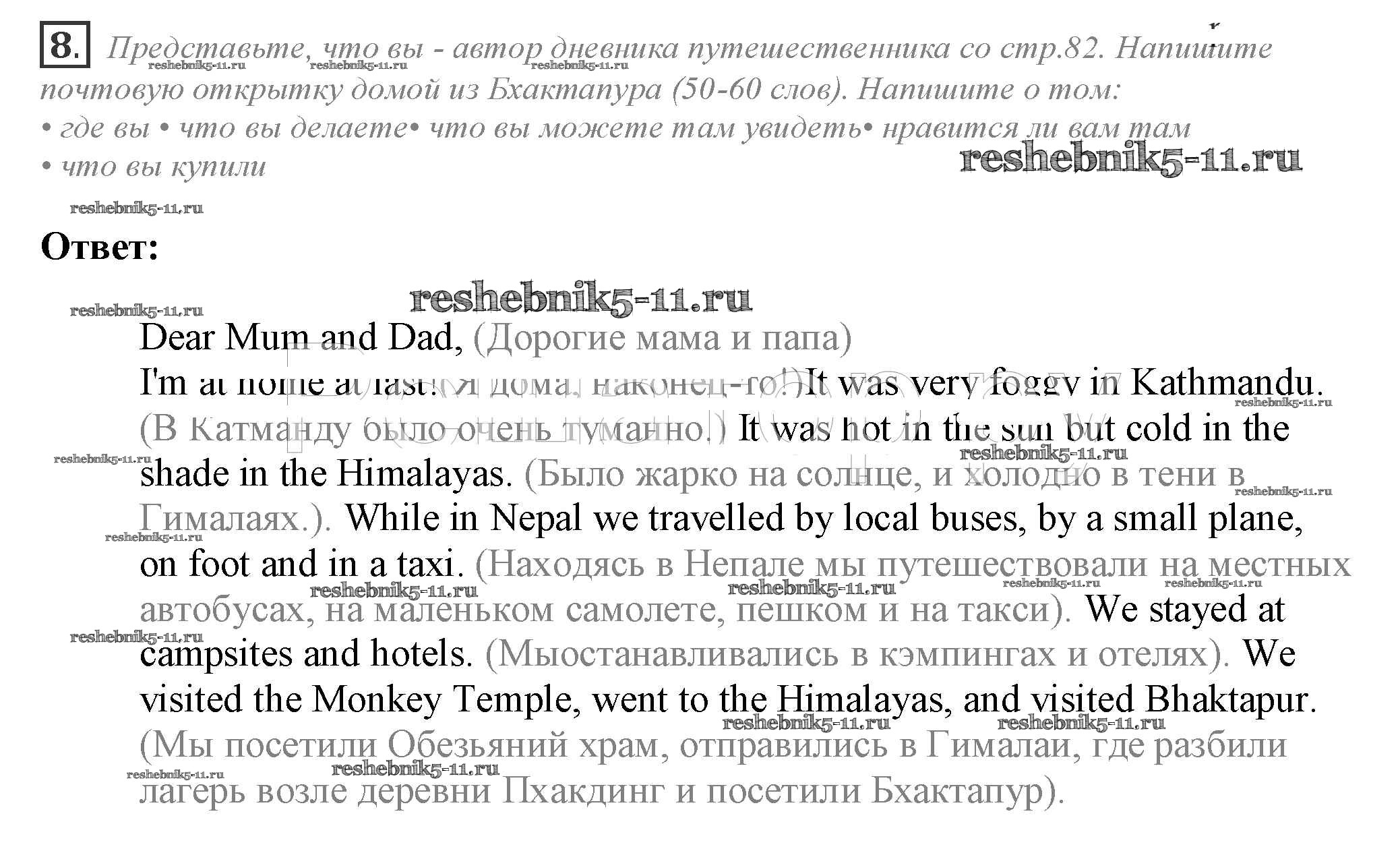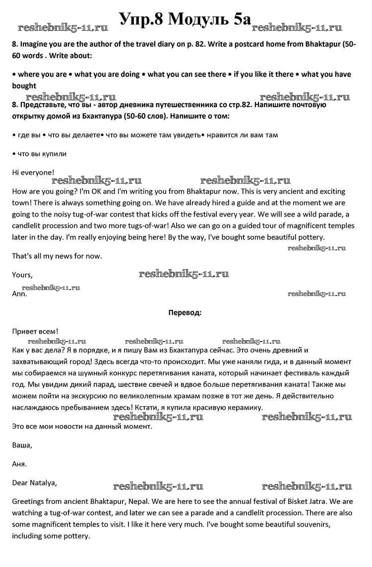 Готовая домашняя работа с ответами по Английскому языку за 10 класс Афанасьева, Дули, Михеева, Оби, Эванс Учебник Spotlight Просвещение 2015 ФГОС - Часть 5a 8