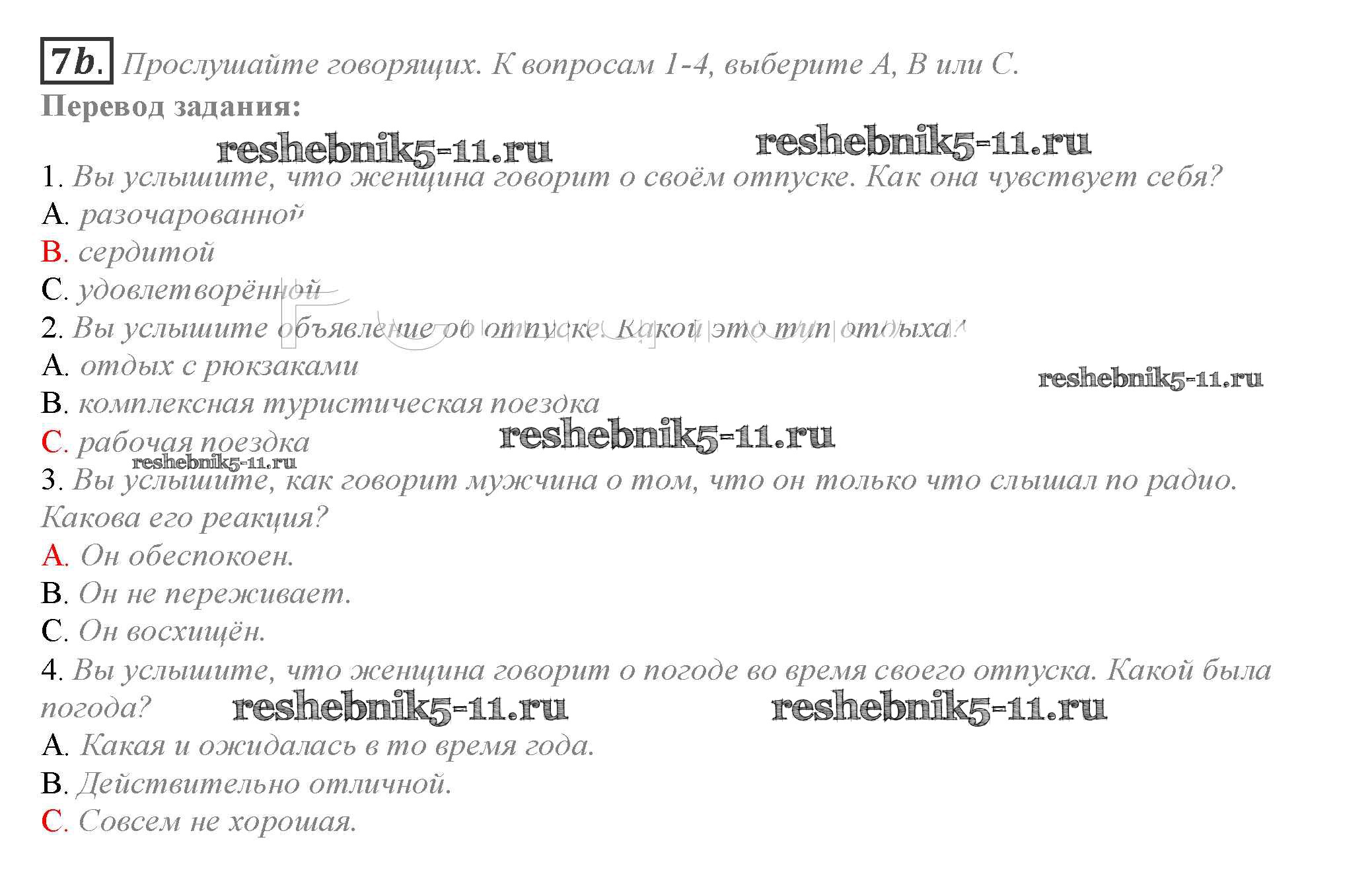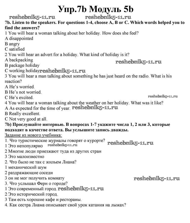 Готовая домашняя работа с ответами по Английскому языку за 10 класс Афанасьева, Дули, Михеева, Оби, Эванс Учебник Spotlight Просвещение 2015 ФГОС - Часть 5b 7b