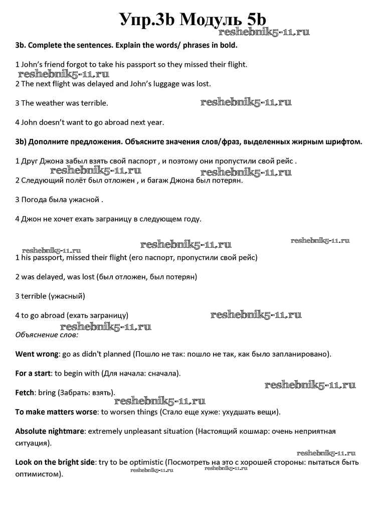 Готовая домашняя работа с ответами по Английскому языку за 10 класс Афанасьева, Дули, Михеева, Оби, Эванс Учебник Spotlight Просвещение 2015 ФГОС - Часть 5b 3b