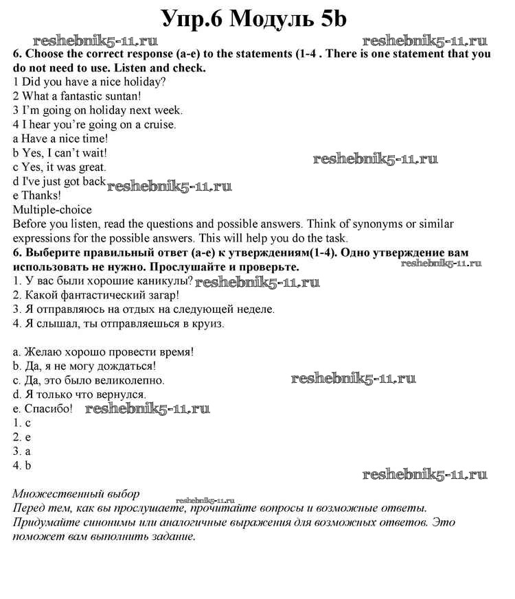 Готовая домашняя работа с ответами по Английскому языку за 10 класс Афанасьева, Дули, Михеева, Оби, Эванс Учебник Spotlight Просвещение 2015 ФГОС - Часть 5b 6