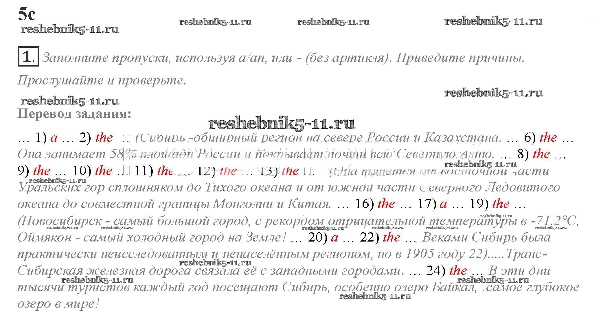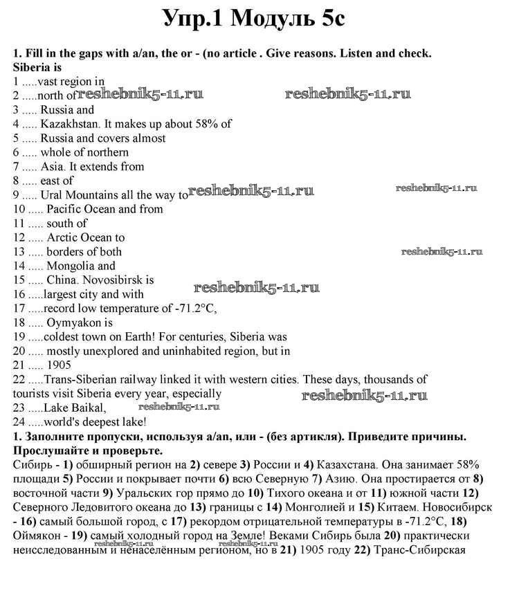 Готовая домашняя работа с ответами по Английскому языку за 10 класс Афанасьева, Дули, Михеева, Оби, Эванс Учебник Spotlight Просвещение 2015 ФГОС - Часть 5c 1