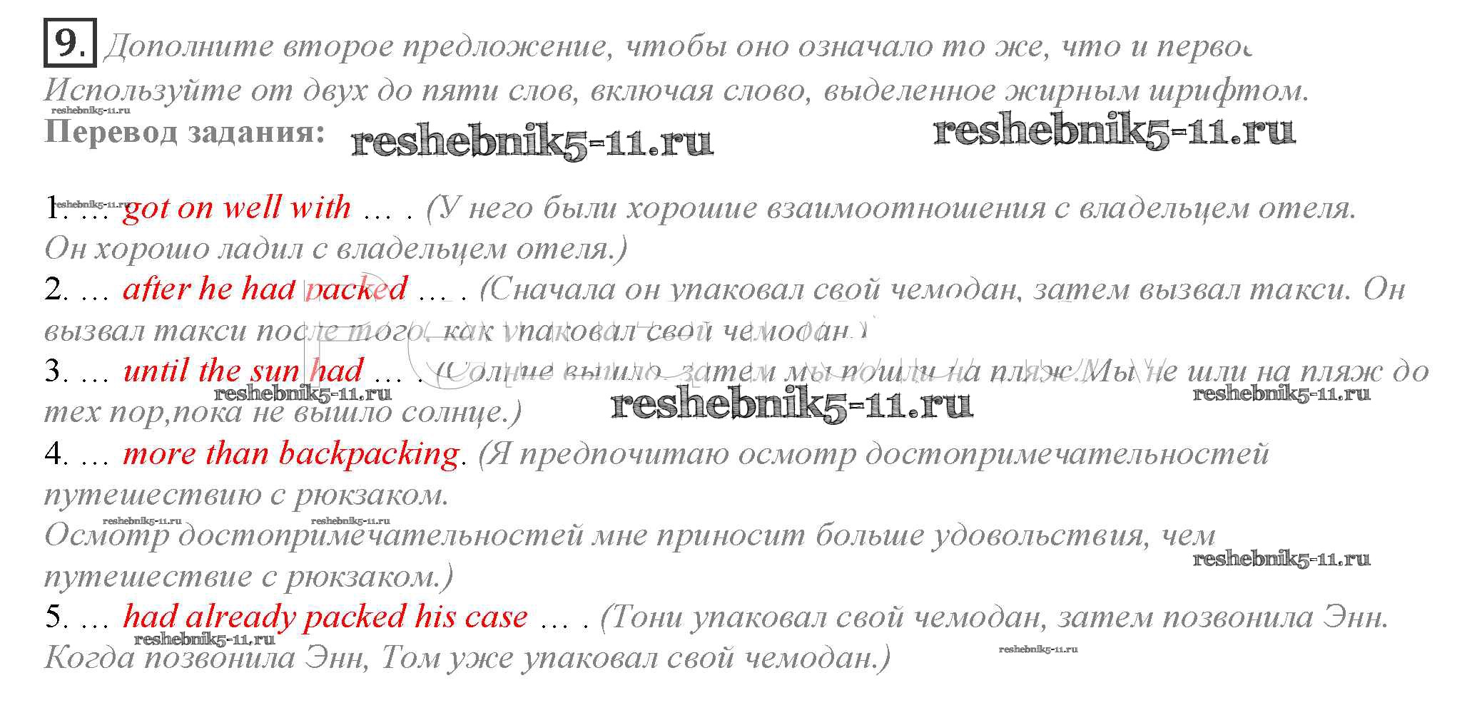Готовая домашняя работа с ответами по Английскому языку за 10 класс Афанасьева, Дули, Михеева, Оби, Эванс Учебник Spotlight Просвещение 2015 ФГОС - Часть 5c 9