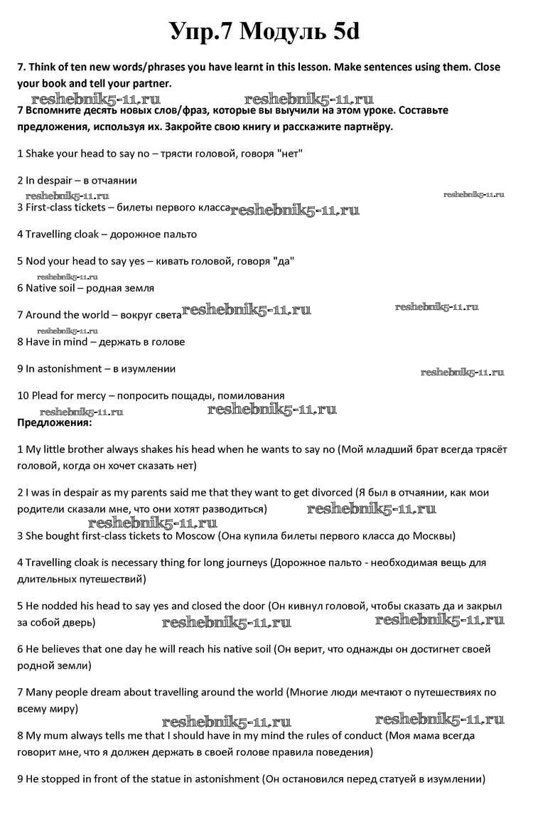 Готовая домашняя работа с ответами по Английскому языку за 10 класс Афанасьева, Дули, Михеева, Оби, Эванс Учебник Spotlight Просвещение 2015 ФГОС - Часть 5d 7