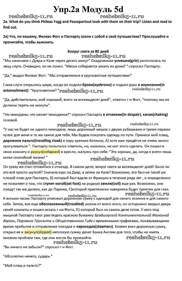 Готовая домашняя работа с ответами по Английскому языку за 10 класс Афанасьева, Дули, Михеева, Оби, Эванс Учебник Spotlight Просвещение 2015 ФГОС - Часть 5d 2a