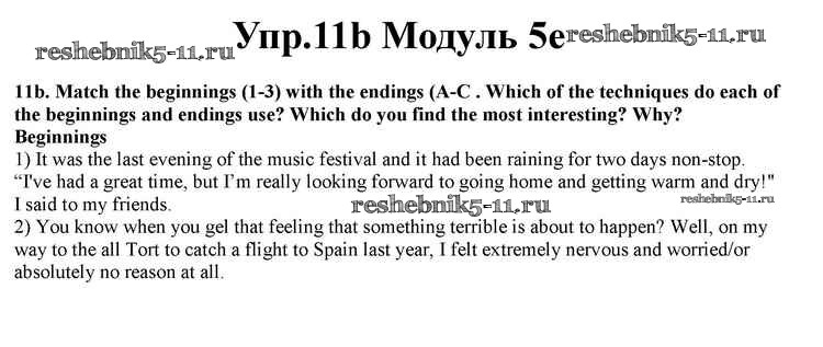 Готовая домашняя работа с ответами по Английскому языку за 10 класс Афанасьева, Дули, Михеева, Оби, Эванс Учебник Spotlight Просвещение 2015 ФГОС - Часть 5e 11b
