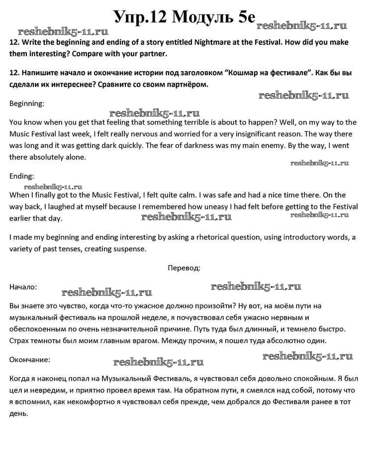 Готовая домашняя работа с ответами по Английскому языку за 10 класс Афанасьева, Дули, Михеева, Оби, Эванс Учебник Spotlight Просвещение 2015 ФГОС - Часть 5e 12