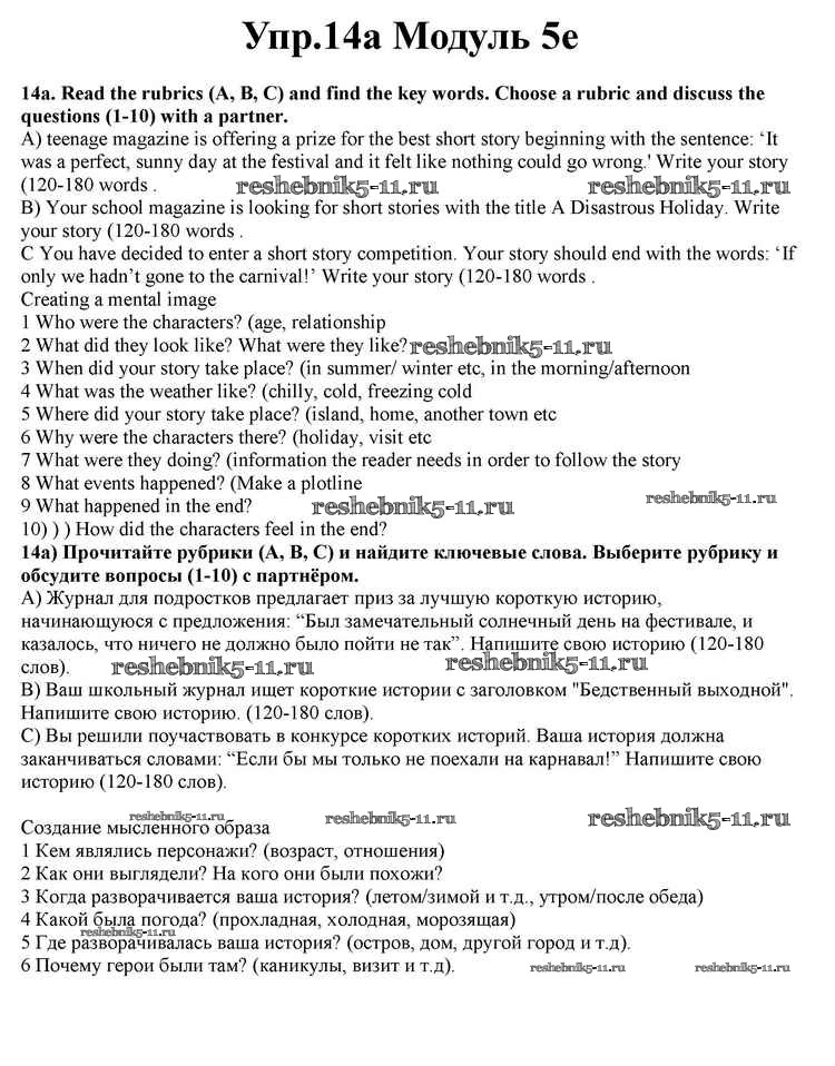 Готовая домашняя работа с ответами по Английскому языку за 10 класс Афанасьева, Дули, Михеева, Оби, Эванс Учебник Spotlight Просвещение 2015 ФГОС - Часть 5e 14a