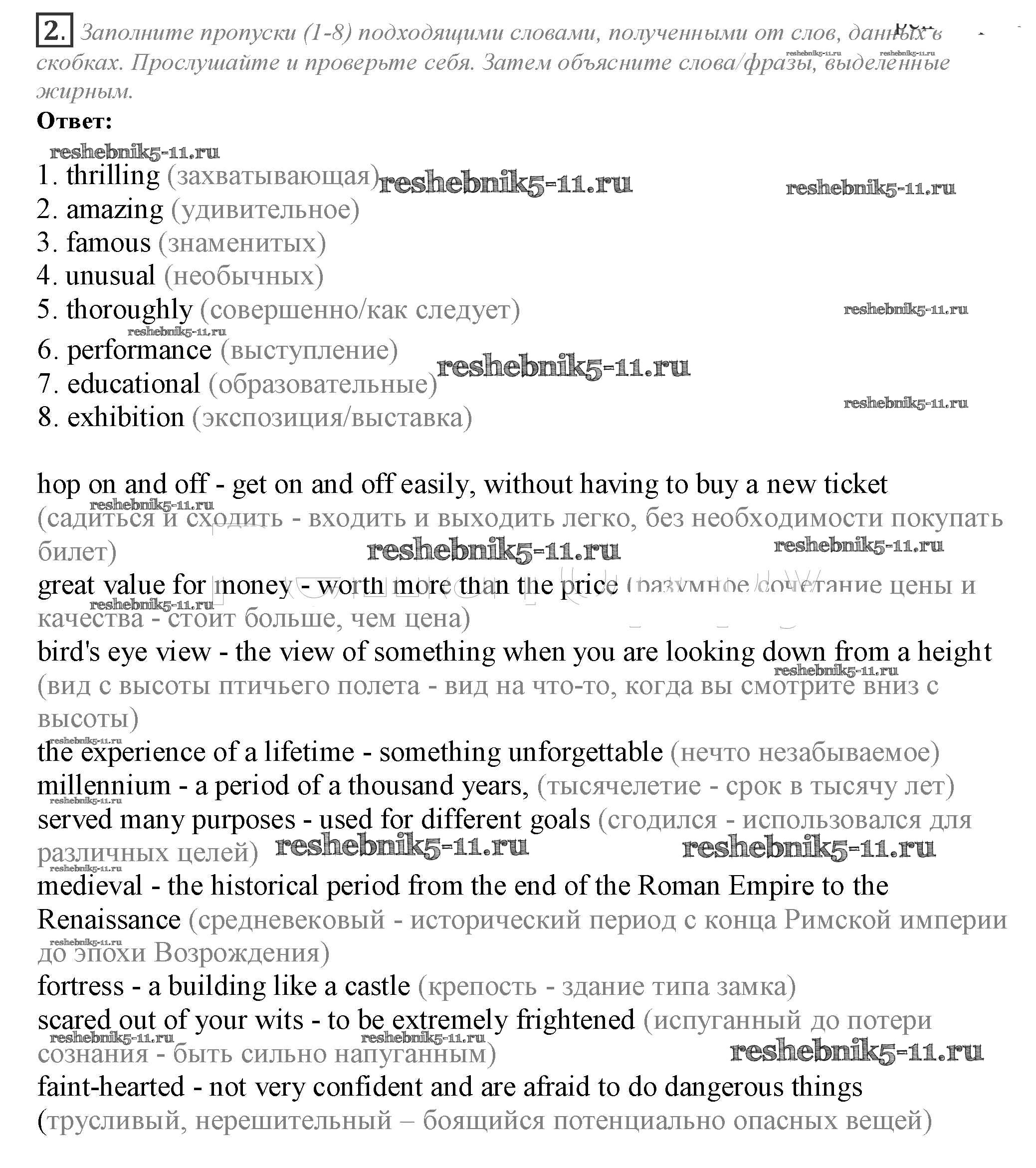 Готовая домашняя работа с ответами по Английскому языку за 10 класс Афанасьева, Дули, Михеева, Оби, Эванс Учебник Spotlight Просвещение 2015 ФГОС - Culture corner 2