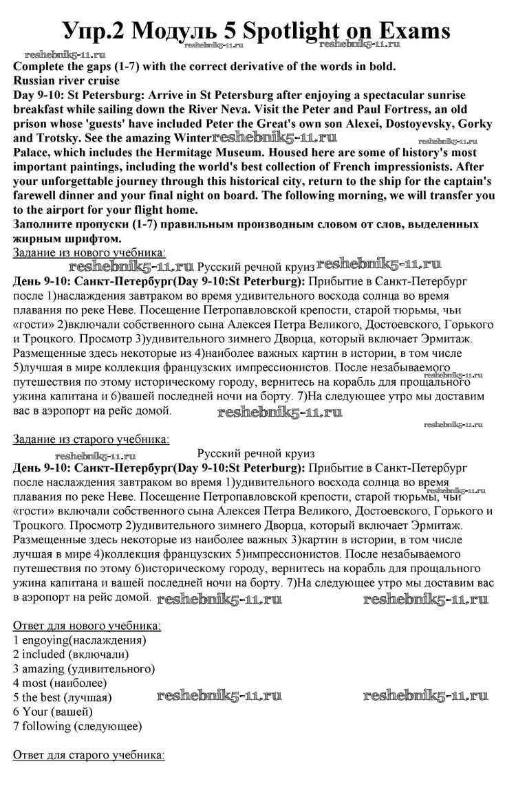 Готовая домашняя работа с ответами по Английскому языку за 10 класс Афанасьева, Дули, Михеева, Оби, Эванс Учебник Spotlight Просвещение 2015 ФГОС - Spotlight on Exams 2