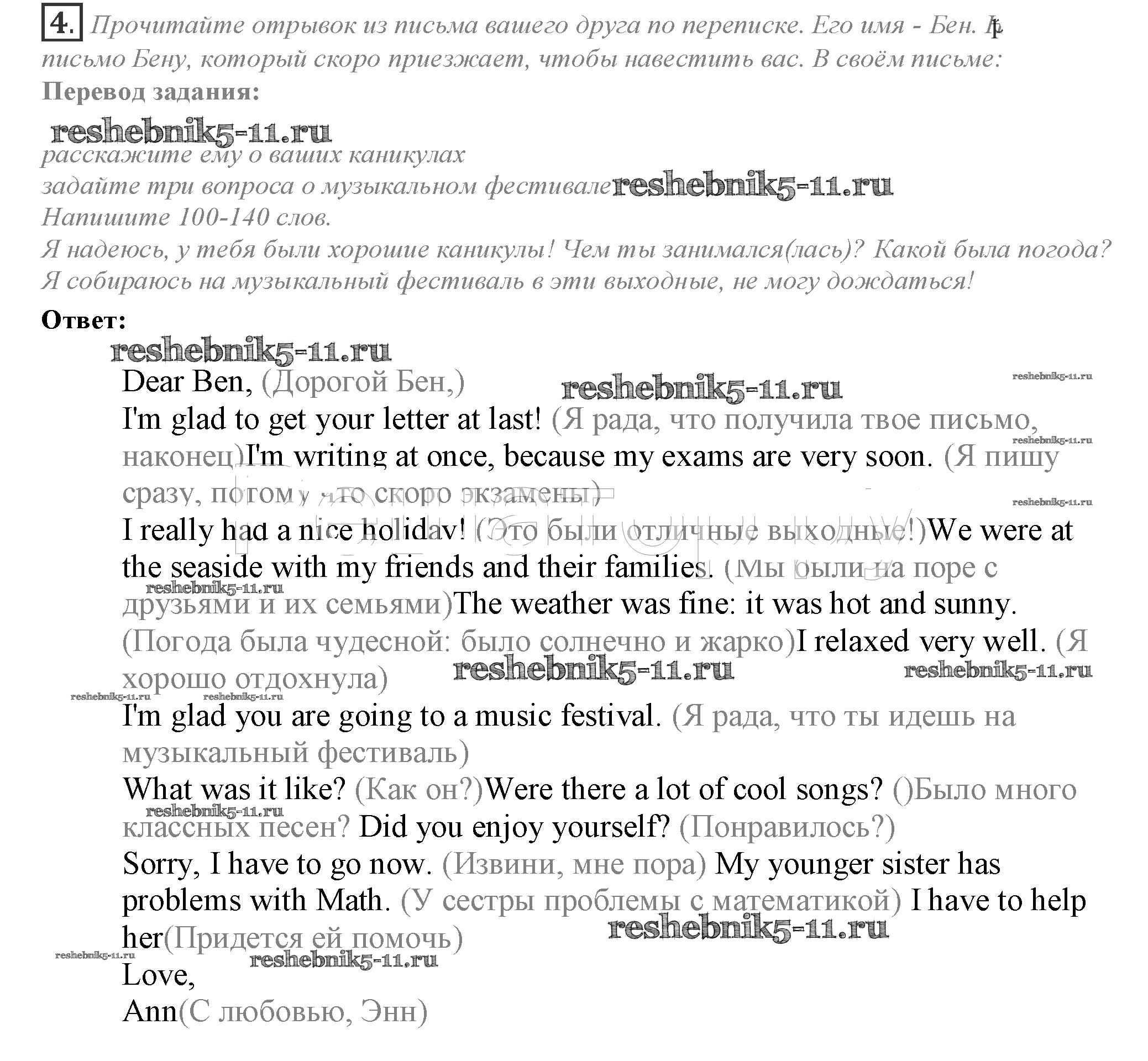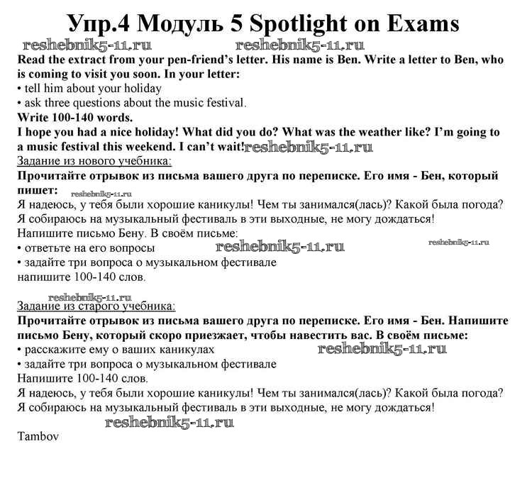 Готовая домашняя работа с ответами по Английскому языку за 10 класс Афанасьева, Дули, Михеева, Оби, Эванс Учебник Spotlight Просвещение 2015 ФГОС - Spotlight on Exams 4