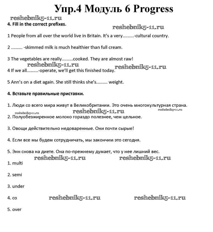 Готовая домашняя работа с ответами по Английскому языку за 10 класс Афанасьева, Дули, Михеева, Оби, Эванс Учебник Spotlight Просвещение 2015 ФГОС - Progress Check 4