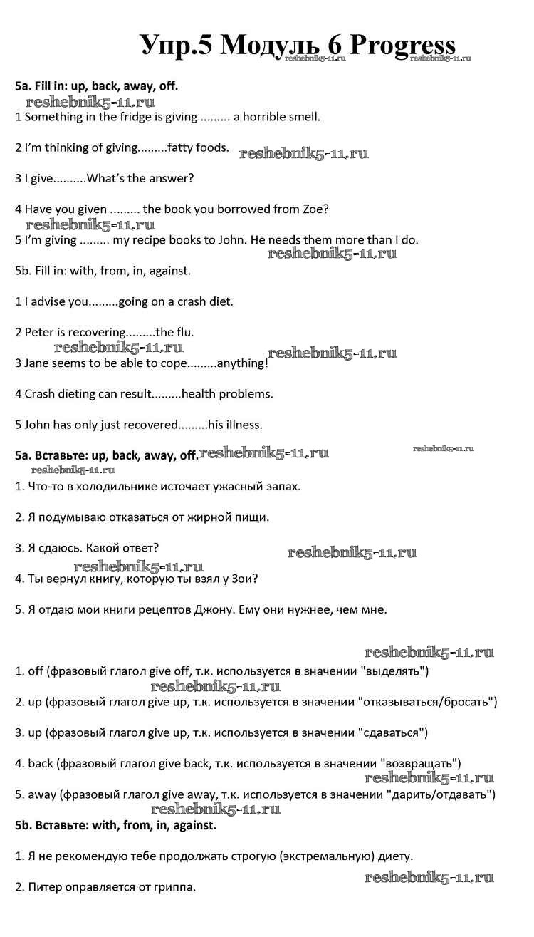 Готовая домашняя работа с ответами по Английскому языку за 10 класс Афанасьева, Дули, Михеева, Оби, Эванс Учебник Spotlight Просвещение 2015 ФГОС - Progress Check 5