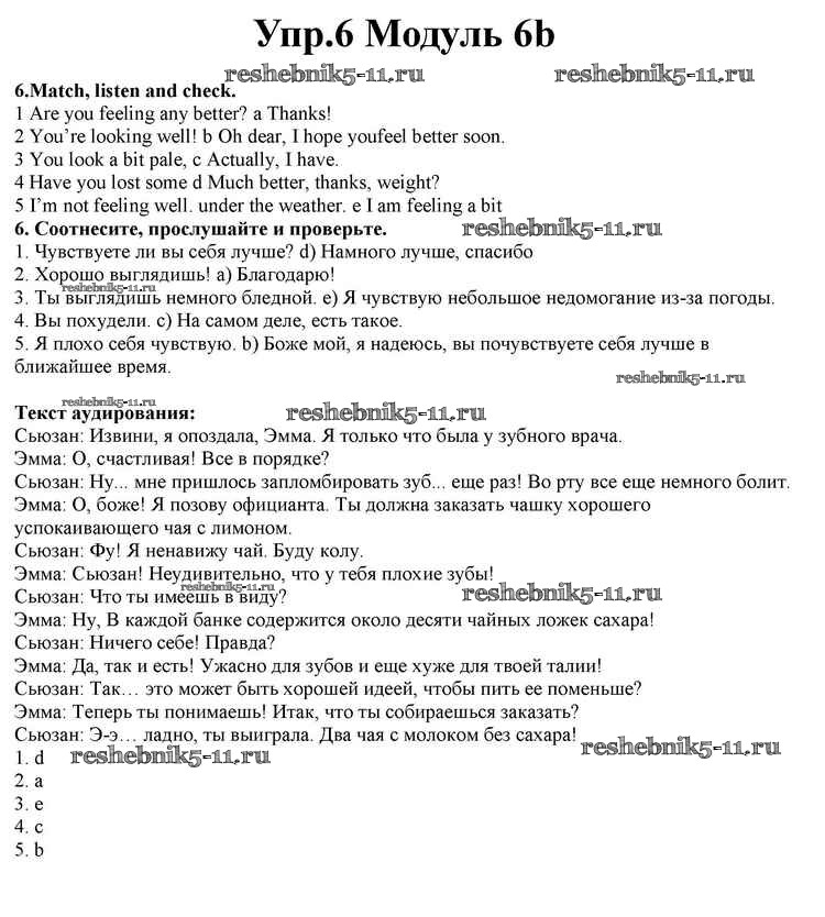Готовая домашняя работа с ответами по Английскому языку за 10 класс Афанасьева, Дули, Михеева, Оби, Эванс Учебник Spotlight Просвещение 2015 ФГОС - Часть 6b 6