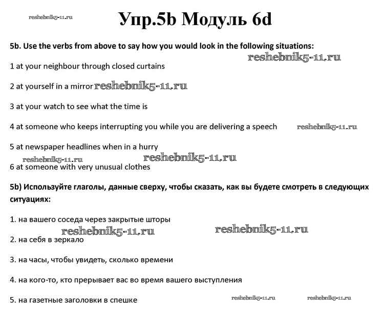 Готовая домашняя работа с ответами по Английскому языку за 10 класс Афанасьева, Дули, Михеева, Оби, Эванс Учебник Spotlight Просвещение 2015 ФГОС - Часть 6d 5b