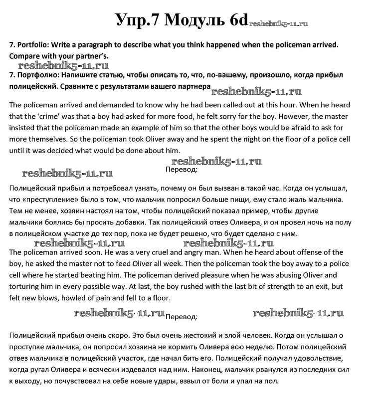 Готовая домашняя работа с ответами по Английскому языку за 10 класс Афанасьева, Дули, Михеева, Оби, Эванс Учебник Spotlight Просвещение 2015 ФГОС - Часть 6d 7