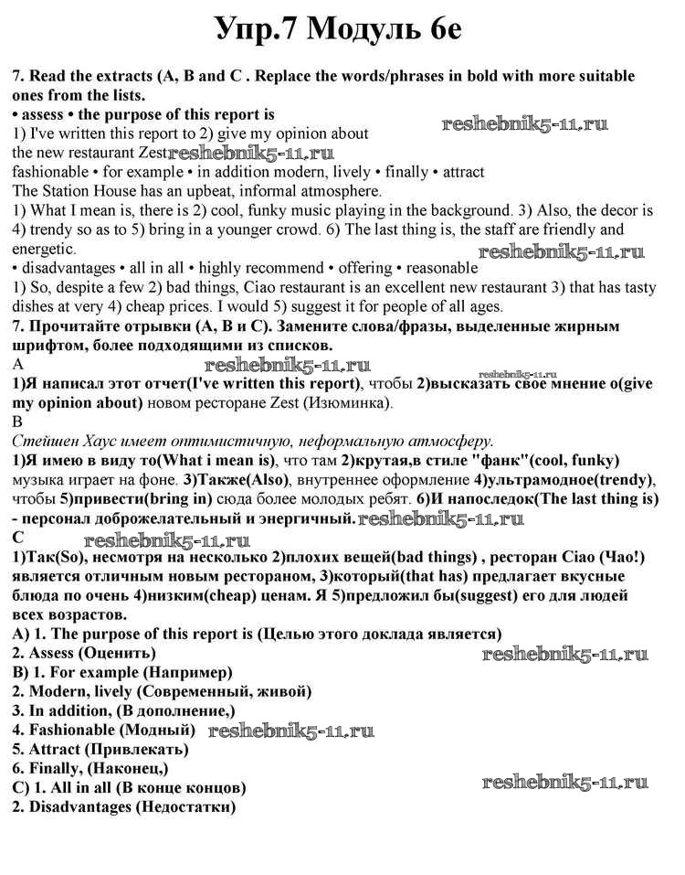 Готовая домашняя работа с ответами по Английскому языку за 10 класс Афанасьева, Дули, Михеева, Оби, Эванс Учебник Spotlight Просвещение 2015 ФГОС - Часть 6e 7