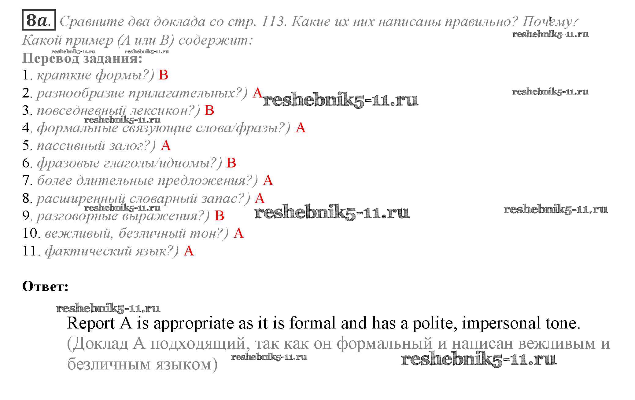 Готовая домашняя работа с ответами по Английскому языку за 10 класс Афанасьева, Дули, Михеева, Оби, Эванс Учебник Spotlight Просвещение 2015 ФГОС - Часть 6e 8a