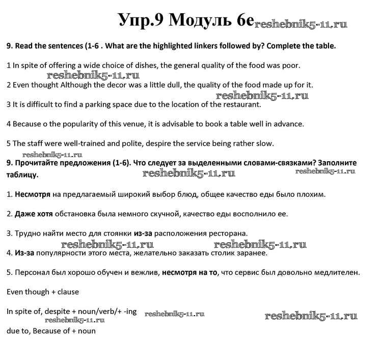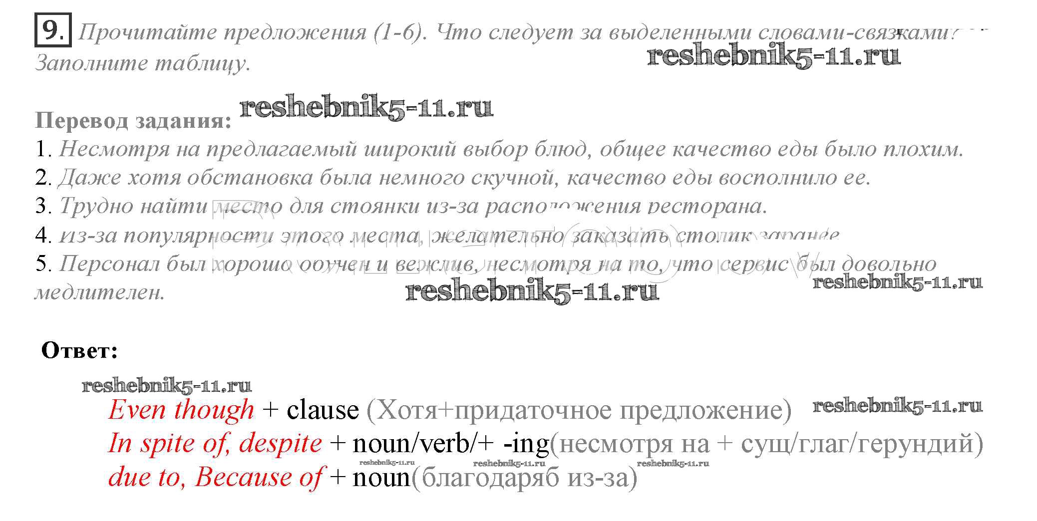 Готовая домашняя работа с ответами по Английскому языку за 10 класс Афанасьева, Дули, Михеева, Оби, Эванс Учебник Spotlight Просвещение 2015 ФГОС - Часть 6e 9