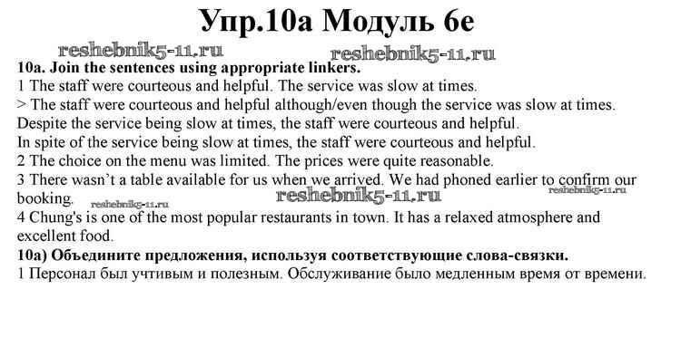 Готовая домашняя работа с ответами по Английскому языку за 10 класс Афанасьева, Дули, Михеева, Оби, Эванс Учебник Spotlight Просвещение 2015 ФГОС - Часть 6e 10a