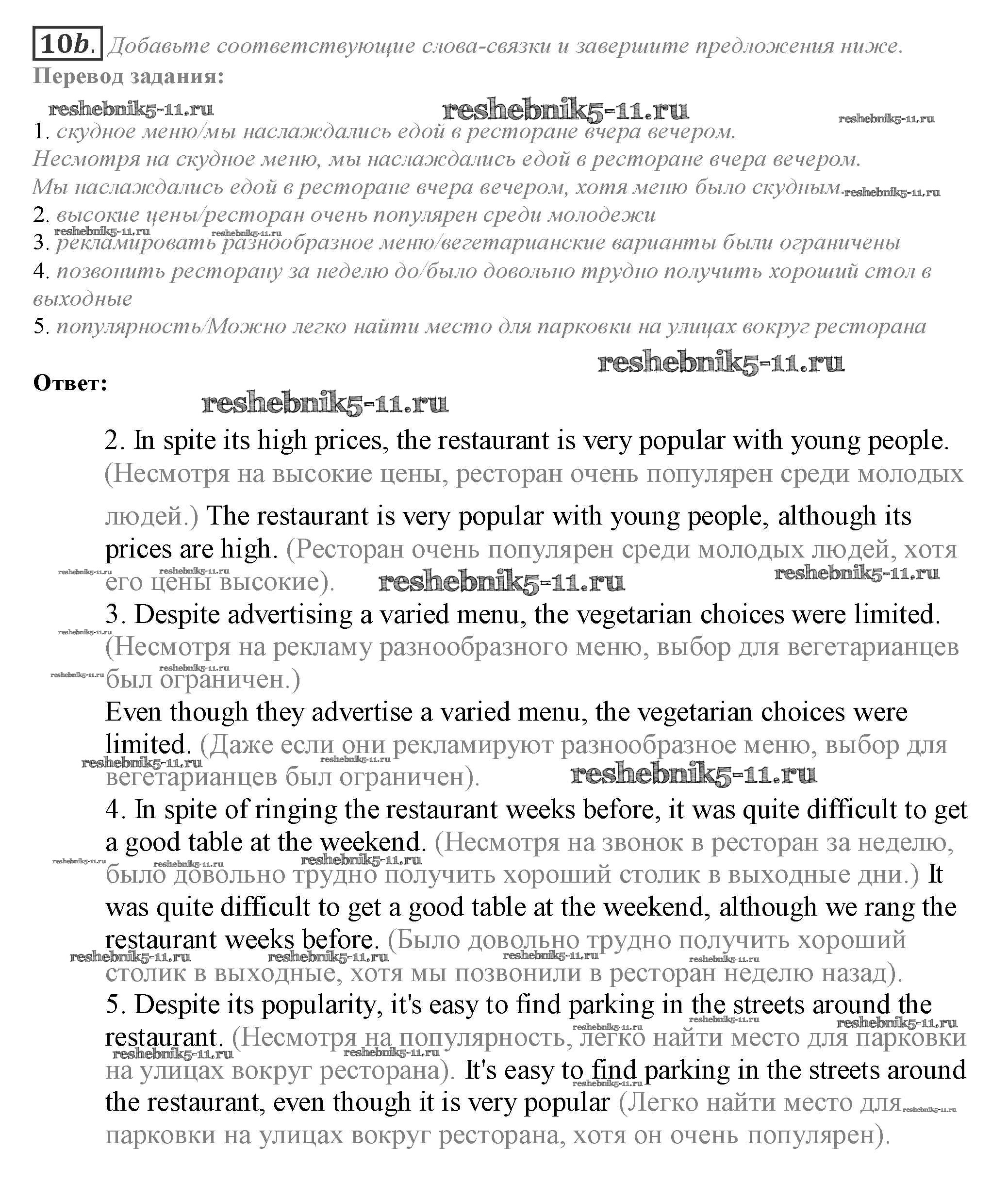 Готовая домашняя работа с ответами по Английскому языку за 10 класс Афанасьева, Дули, Михеева, Оби, Эванс Учебник Spotlight Просвещение 2015 ФГОС - Часть 6e 10b
