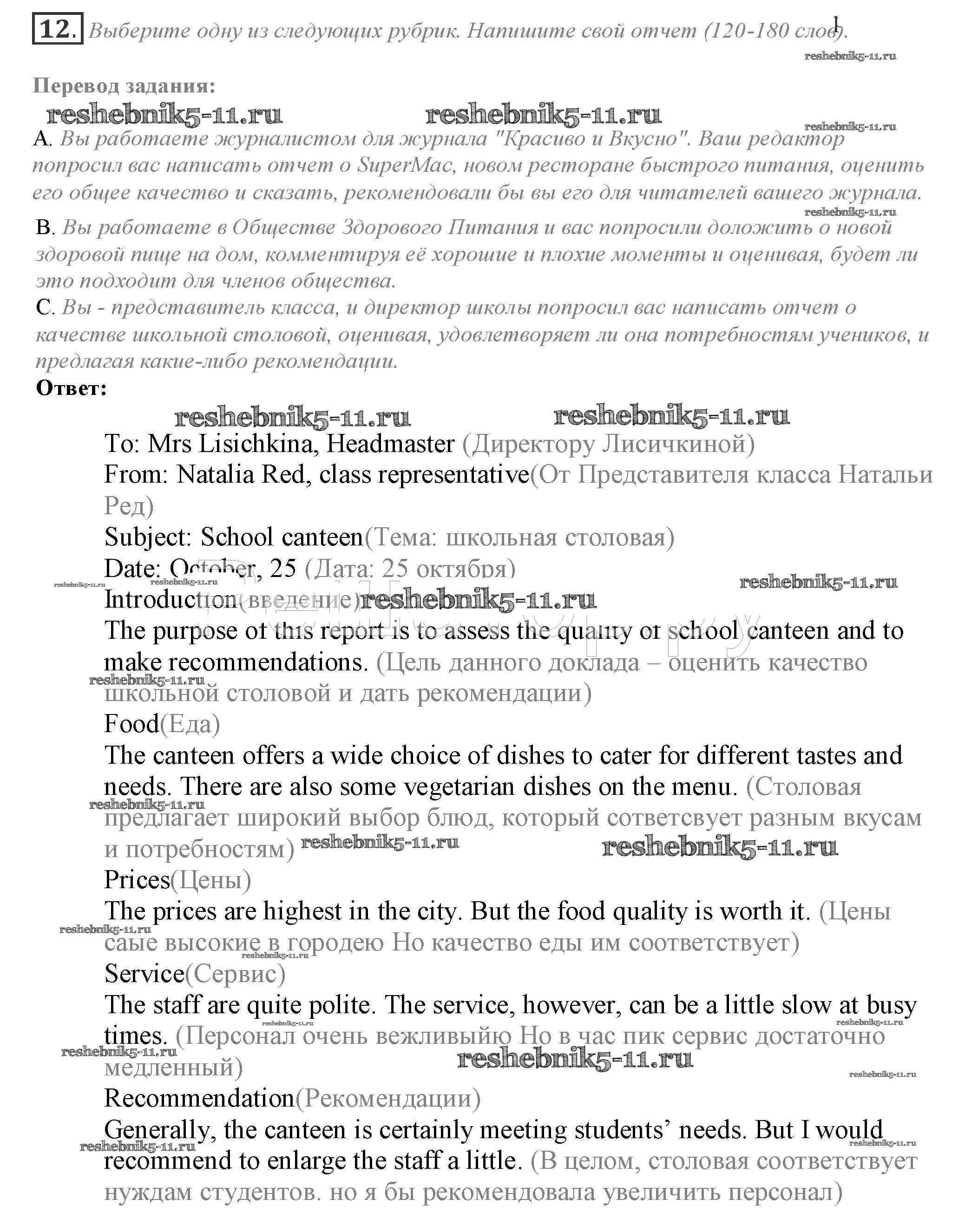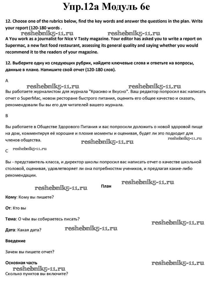 Готовая домашняя работа с ответами по Английскому языку за 10 класс Афанасьева, Дули, Михеева, Оби, Эванс Учебник Spotlight Просвещение 2015 ФГОС - Часть 6e 12a