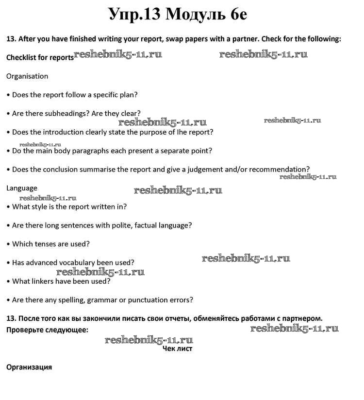 Готовая домашняя работа с ответами по Английскому языку за 10 класс Афанасьева, Дули, Михеева, Оби, Эванс Учебник Spotlight Просвещение 2015 ФГОС - Часть 6e 13