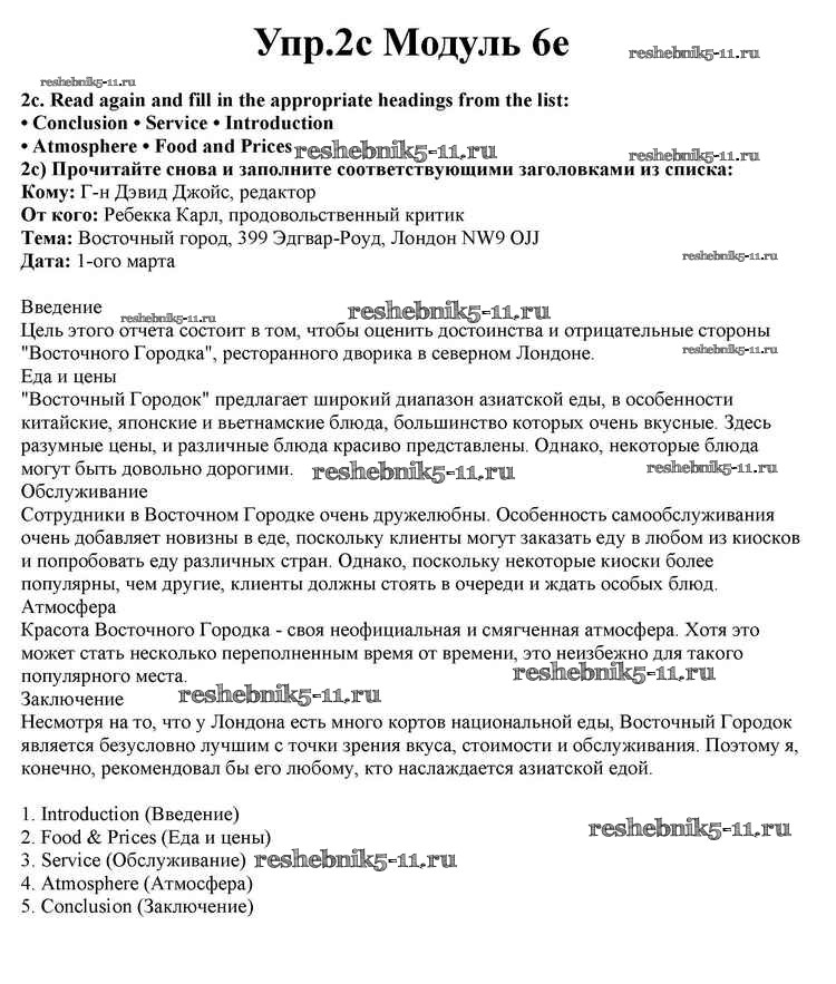 Готовая домашняя работа с ответами по Английскому языку за 10 класс Афанасьева, Дули, Михеева, Оби, Эванс Учебник Spotlight Просвещение 2015 ФГОС - Часть 6e 2c