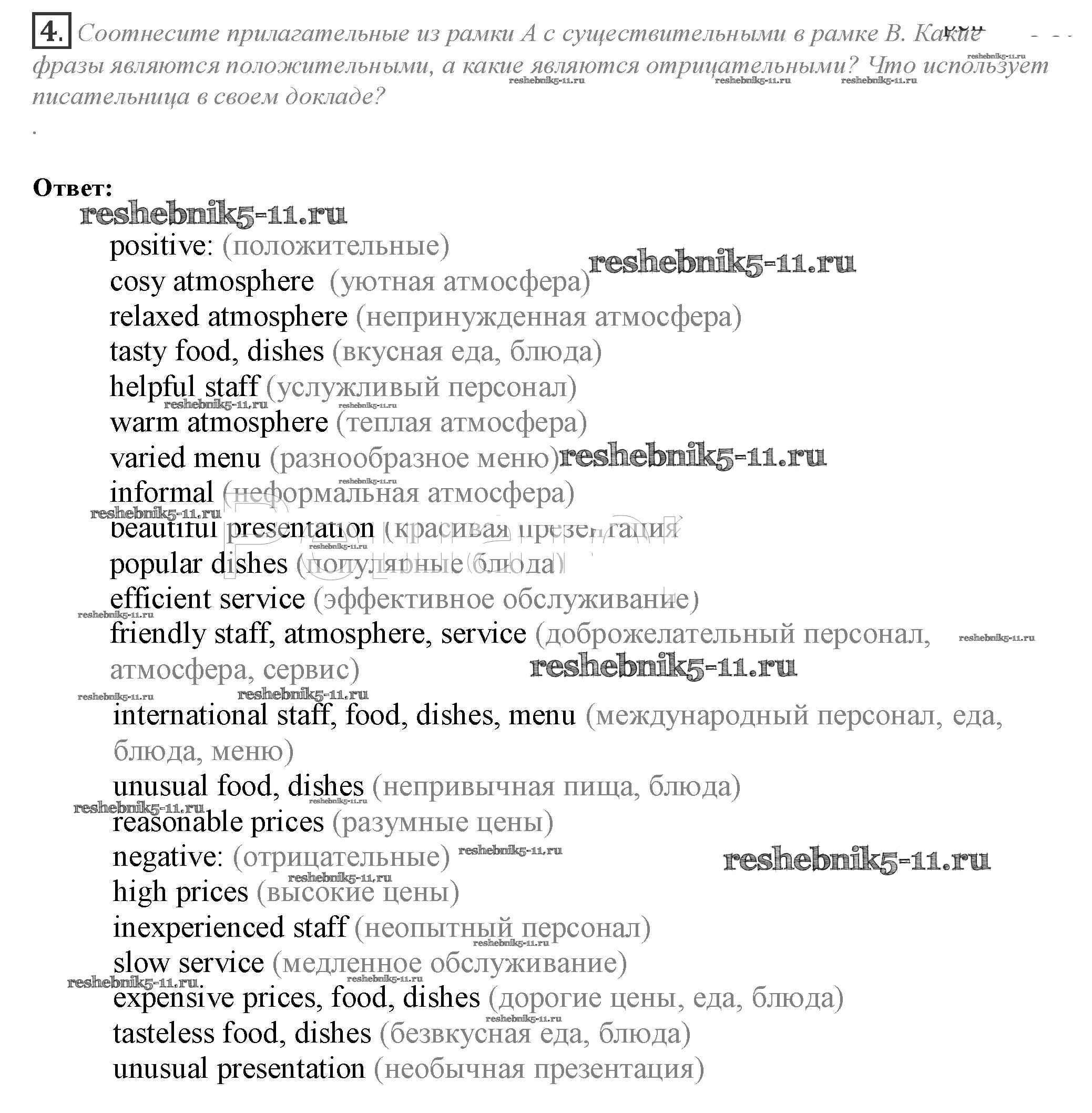 Готовая домашняя работа с ответами по Английскому языку за 10 класс Афанасьева, Дули, Михеева, Оби, Эванс Учебник Spotlight Просвещение 2015 ФГОС - Часть 6e 4