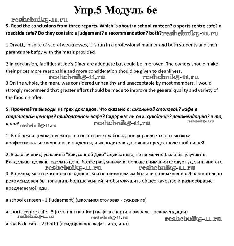Готовая домашняя работа с ответами по Английскому языку за 10 класс Афанасьева, Дули, Михеева, Оби, Эванс Учебник Spotlight Просвещение 2015 ФГОС - Часть 6e 5