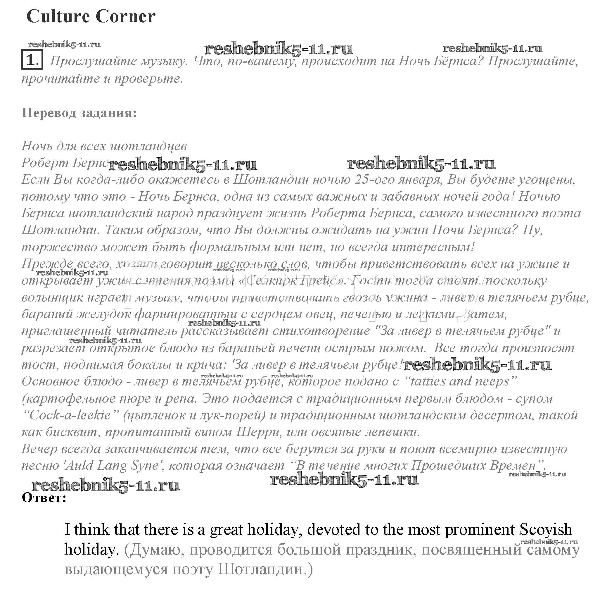 Готовая домашняя работа с ответами по Английскому языку за 10 класс Афанасьева, Дули, Михеева, Оби, Эванс Учебник Spotlight Просвещение 2015 ФГОС - Culture corner 1