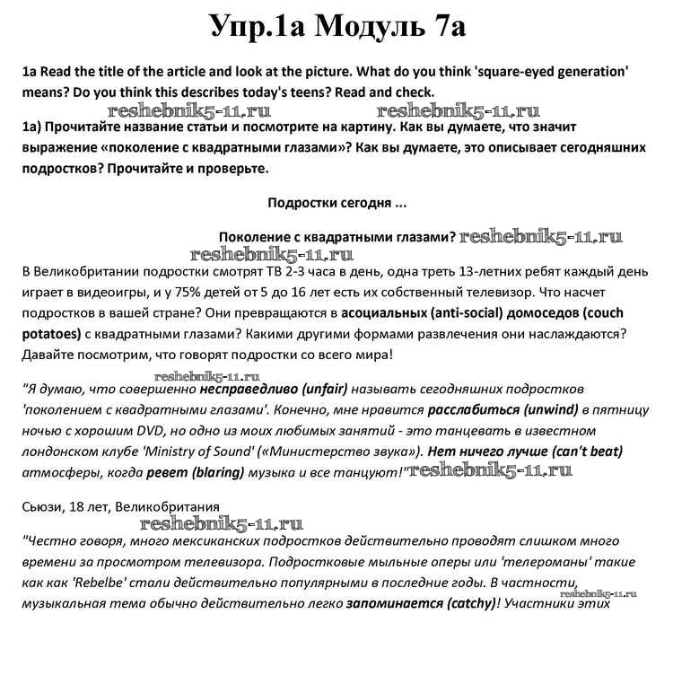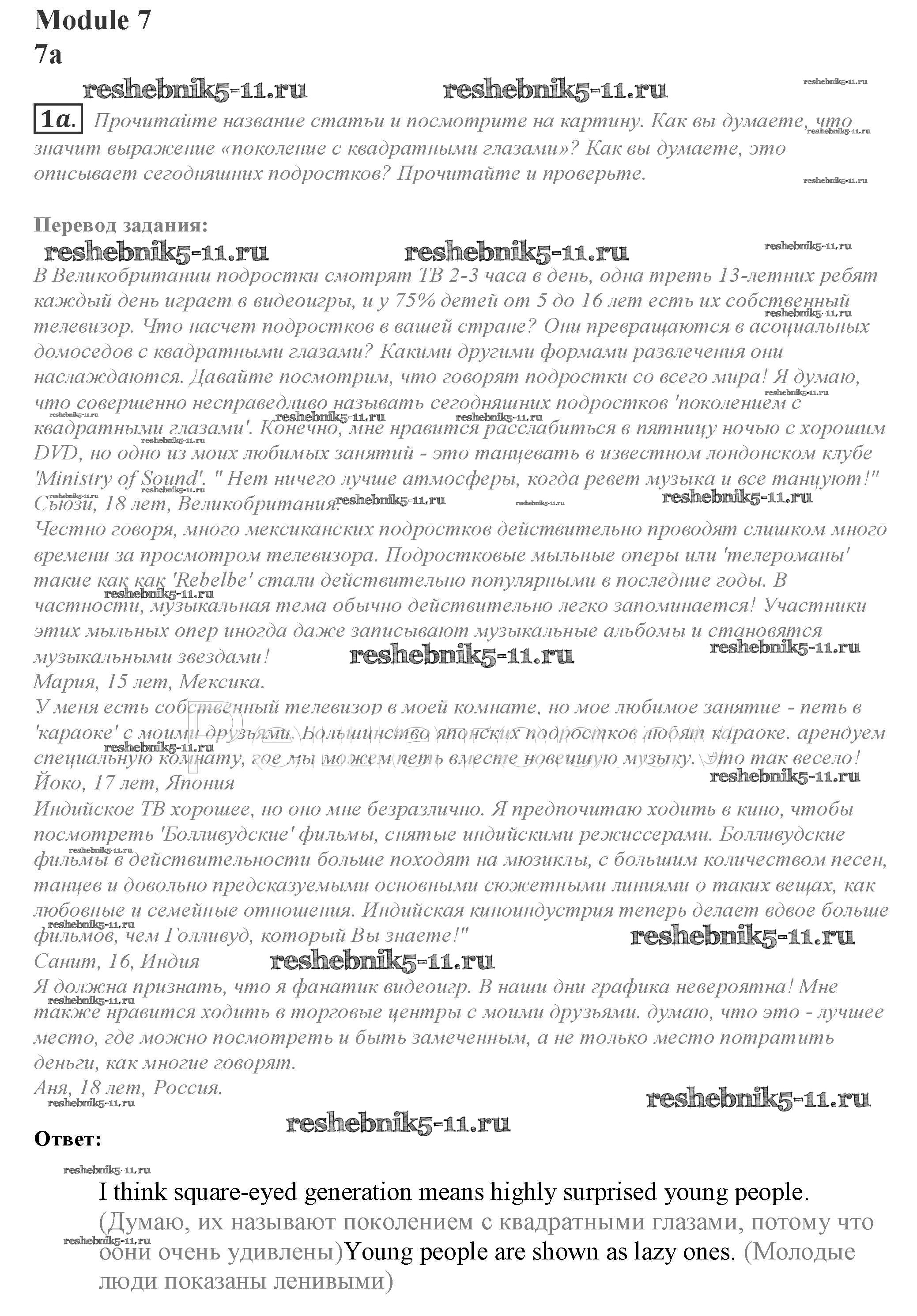 Готовая домашняя работа с ответами по Английскому языку за 10 класс Афанасьева, Дули, Михеева, Оби, Эванс Учебник Spotlight Просвещение 2015 ФГОС - Часть 7a 1a