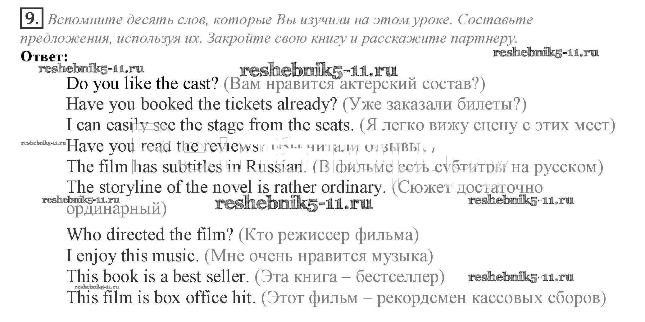 Готовая домашняя работа с ответами по Английскому языку за 10 класс Афанасьева, Дули, Михеева, Оби, Эванс Учебник Spotlight Просвещение 2015 ФГОС - Часть 7a 9