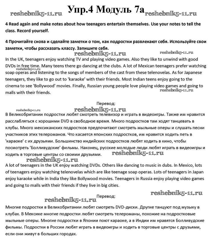 Готовая домашняя работа с ответами по Английскому языку за 10 класс Афанасьева, Дули, Михеева, Оби, Эванс Учебник Spotlight Просвещение 2015 ФГОС - Часть 7a 4