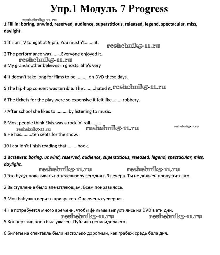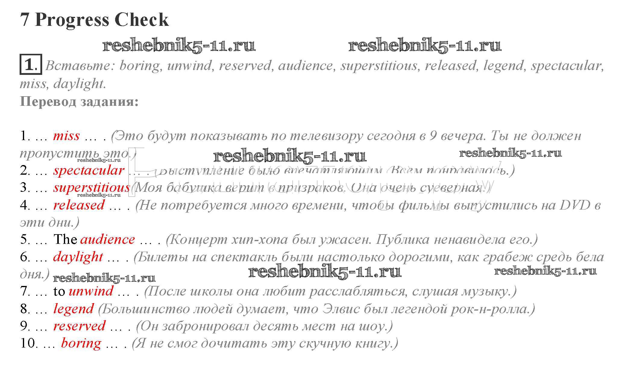 Готовая домашняя работа с ответами по Английскому языку за 10 класс Афанасьева, Дули, Михеева, Оби, Эванс Учебник Spotlight Просвещение 2015 ФГОС - Progress Check 1