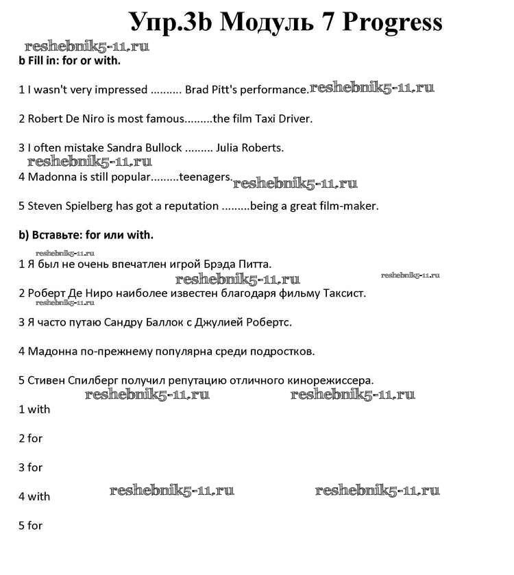 Готовая домашняя работа с ответами по Английскому языку за 10 класс Афанасьева, Дули, Михеева, Оби, Эванс Учебник Spotlight Просвещение 2015 ФГОС - Progress Check 3b