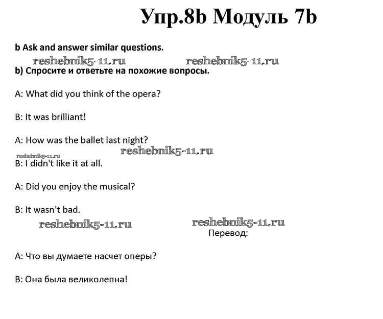 Готовая домашняя работа с ответами по Английскому языку за 10 класс Афанасьева, Дули, Михеева, Оби, Эванс Учебник Spotlight Просвещение 2015 ФГОС - Часть 7b 8b
