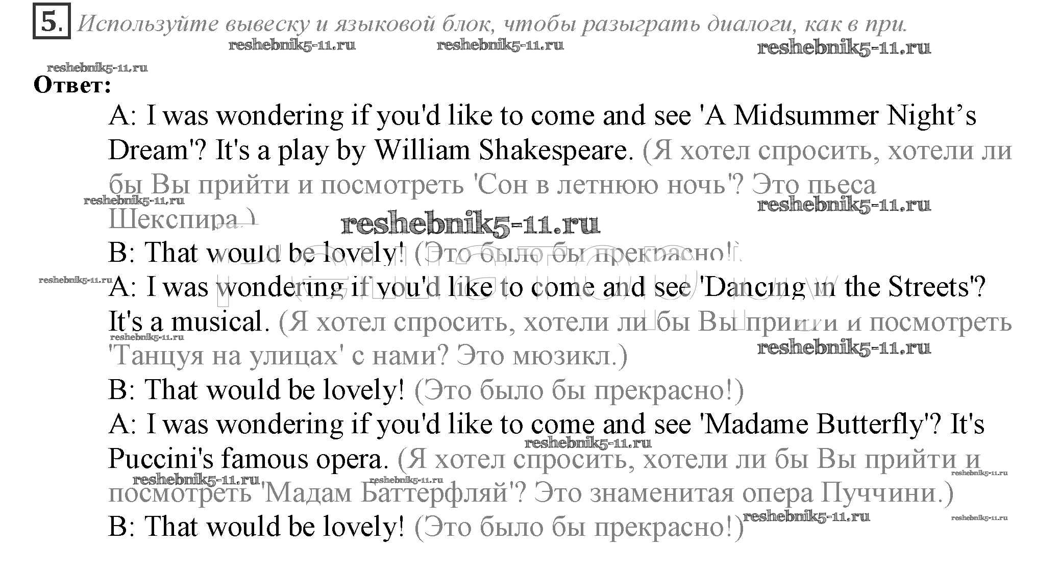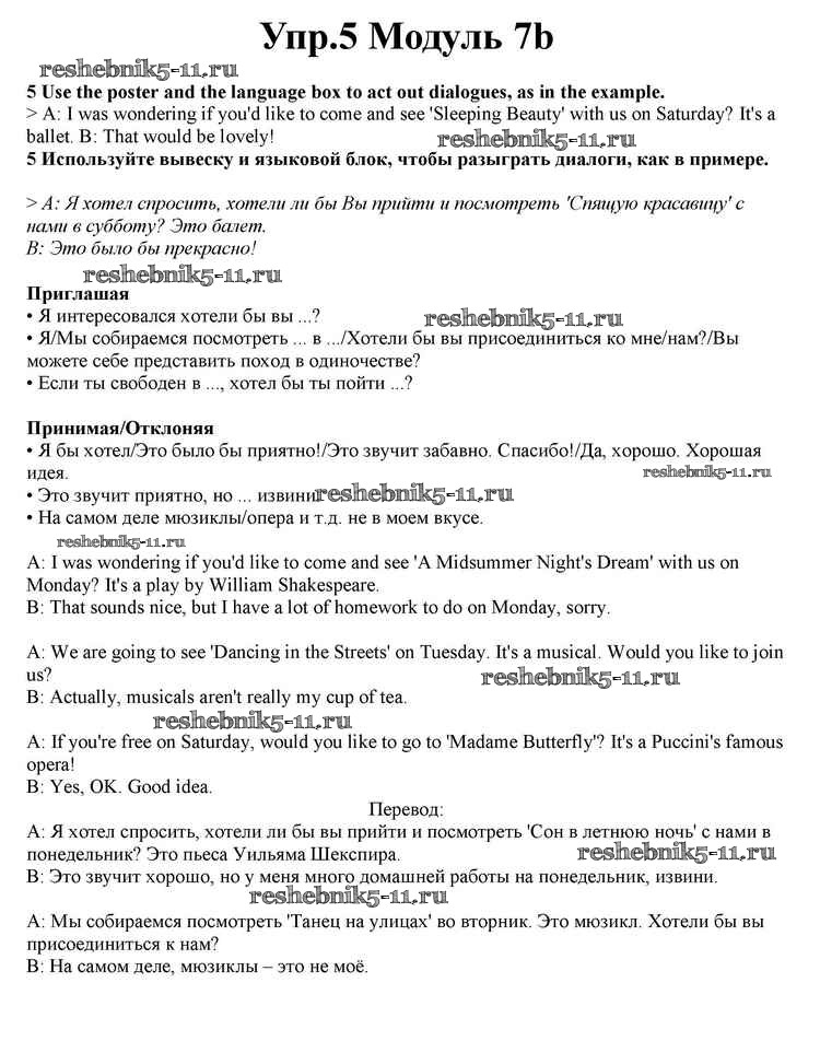 Готовая домашняя работа с ответами по Английскому языку за 10 класс Афанасьева, Дули, Михеева, Оби, Эванс Учебник Spotlight Просвещение 2015 ФГОС - Часть 7b 5