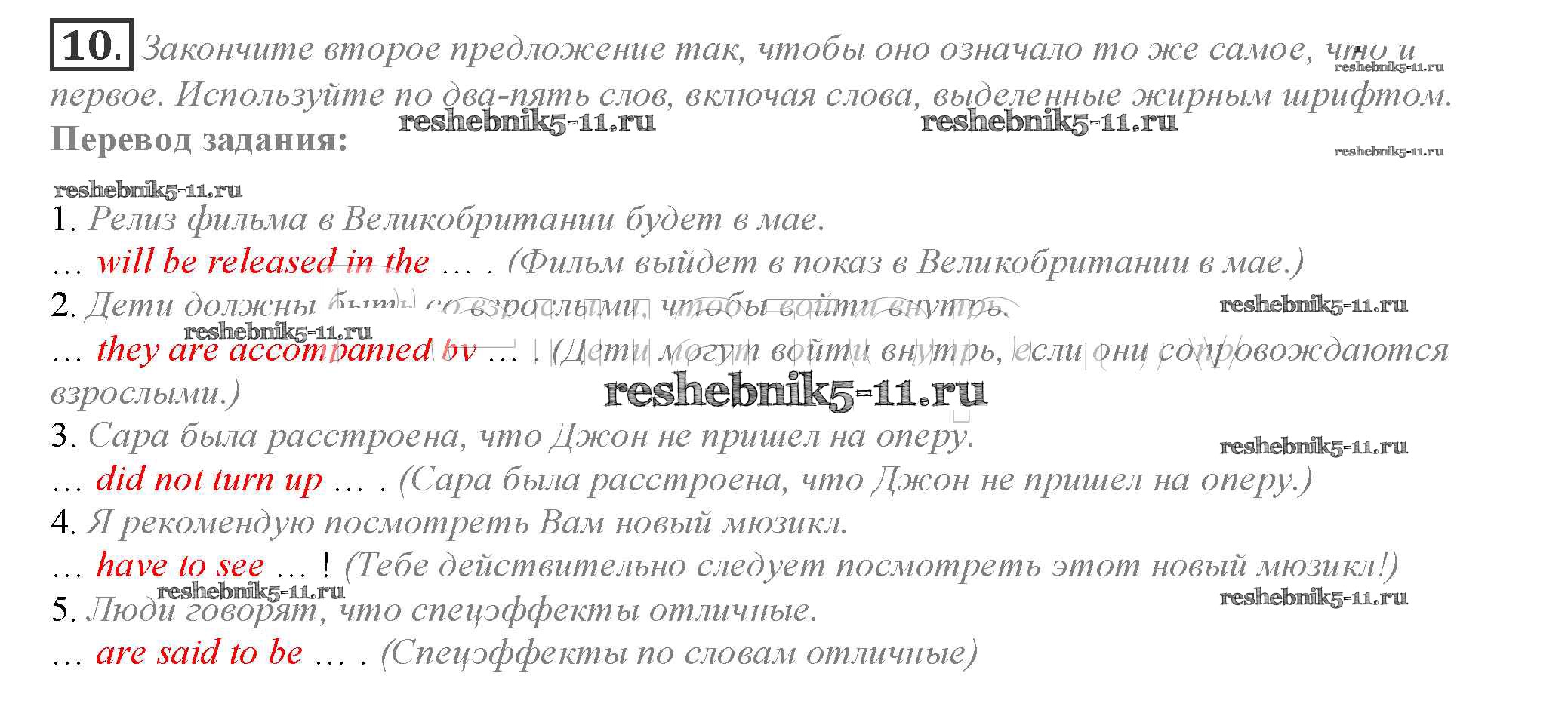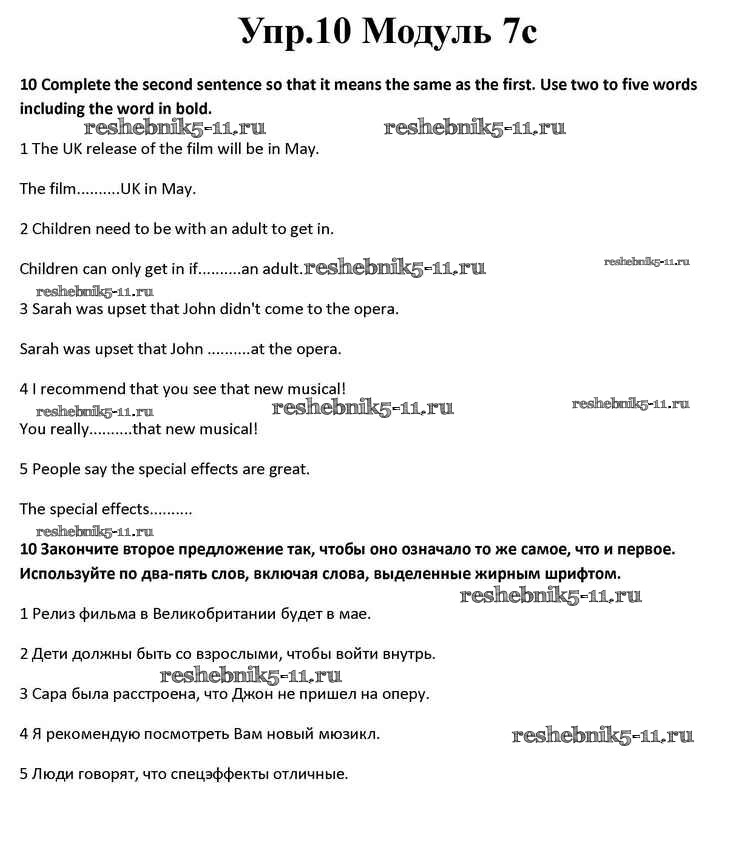 Готовая домашняя работа с ответами по Английскому языку за 10 класс Афанасьева, Дули, Михеева, Оби, Эванс Учебник Spotlight Просвещение 2015 ФГОС - Часть 7c 10