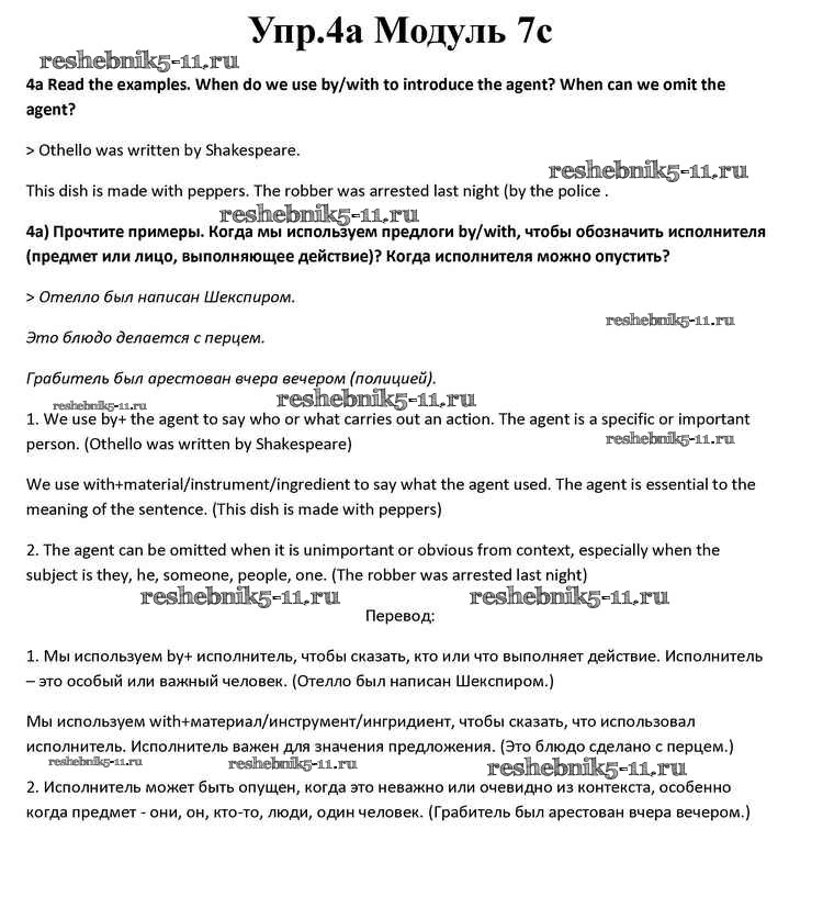 Готовая домашняя работа с ответами по Английскому языку за 10 класс Афанасьева, Дули, Михеева, Оби, Эванс Учебник Spotlight Просвещение 2015 ФГОС - Часть 7c 4a