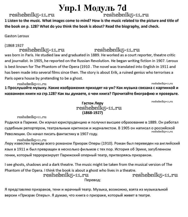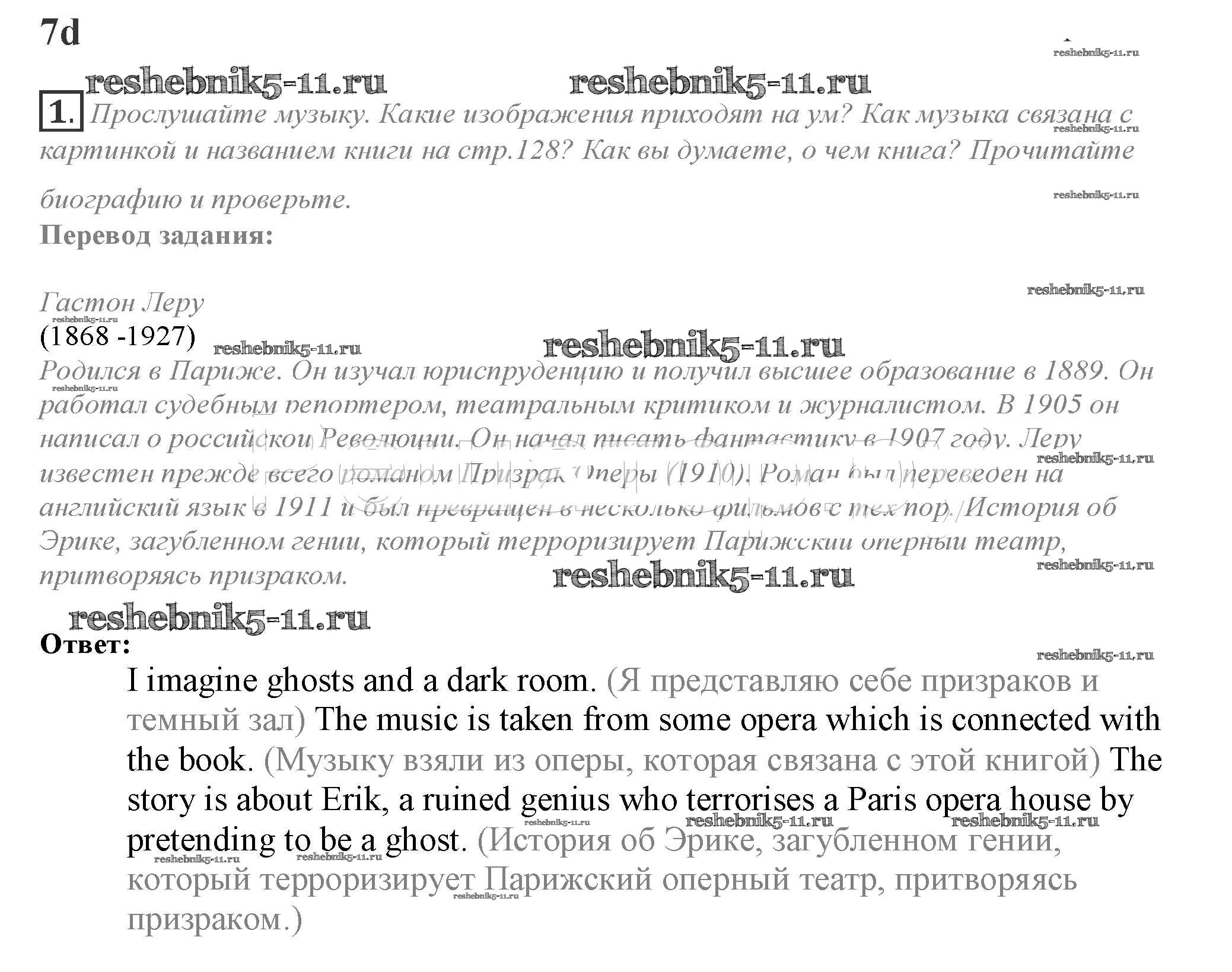 Готовая домашняя работа с ответами по Английскому языку за 10 класс Афанасьева, Дули, Михеева, Оби, Эванс Учебник Spotlight Просвещение 2015 ФГОС - Часть 7d 1