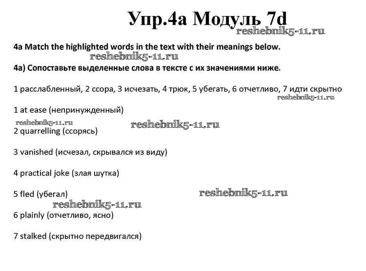 Готовая домашняя работа с ответами по Английскому языку за 10 класс Афанасьева, Дули, Михеева, Оби, Эванс Учебник Spotlight Просвещение 2015 ФГОС - Часть 7d 4a