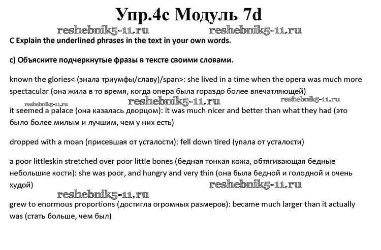 Готовая домашняя работа с ответами по Английскому языку за 10 класс Афанасьева, Дули, Михеева, Оби, Эванс Учебник Spotlight Просвещение 2015 ФГОС - Часть 7d 4c