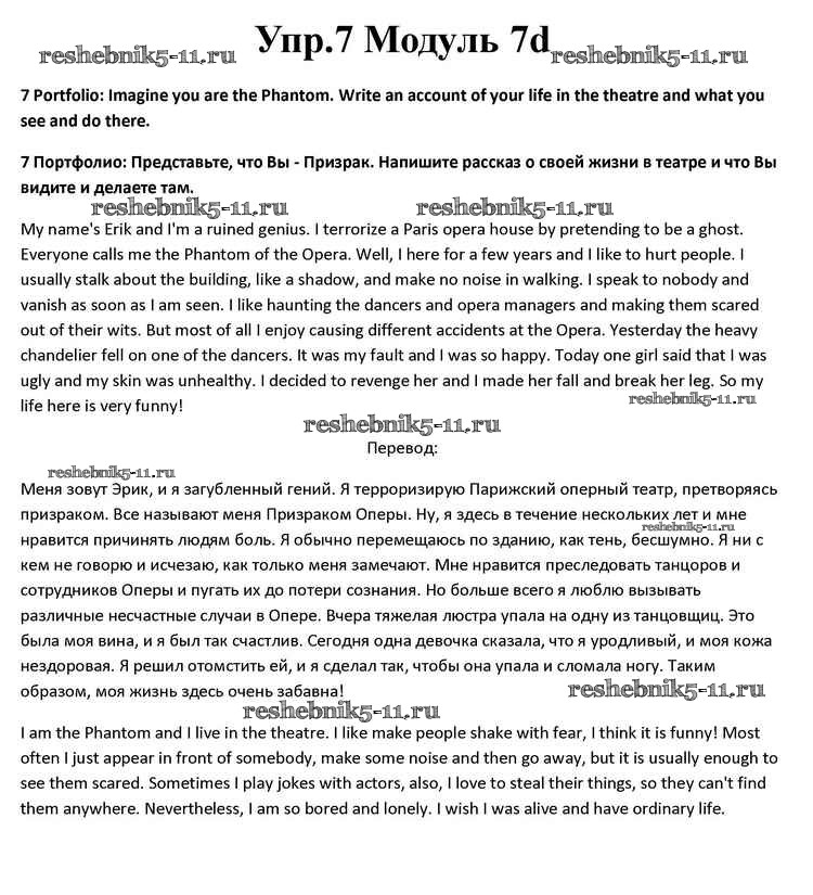 Готовая домашняя работа с ответами по Английскому языку за 10 класс Афанасьева, Дули, Михеева, Оби, Эванс Учебник Spotlight Просвещение 2015 ФГОС - Часть 7d 7