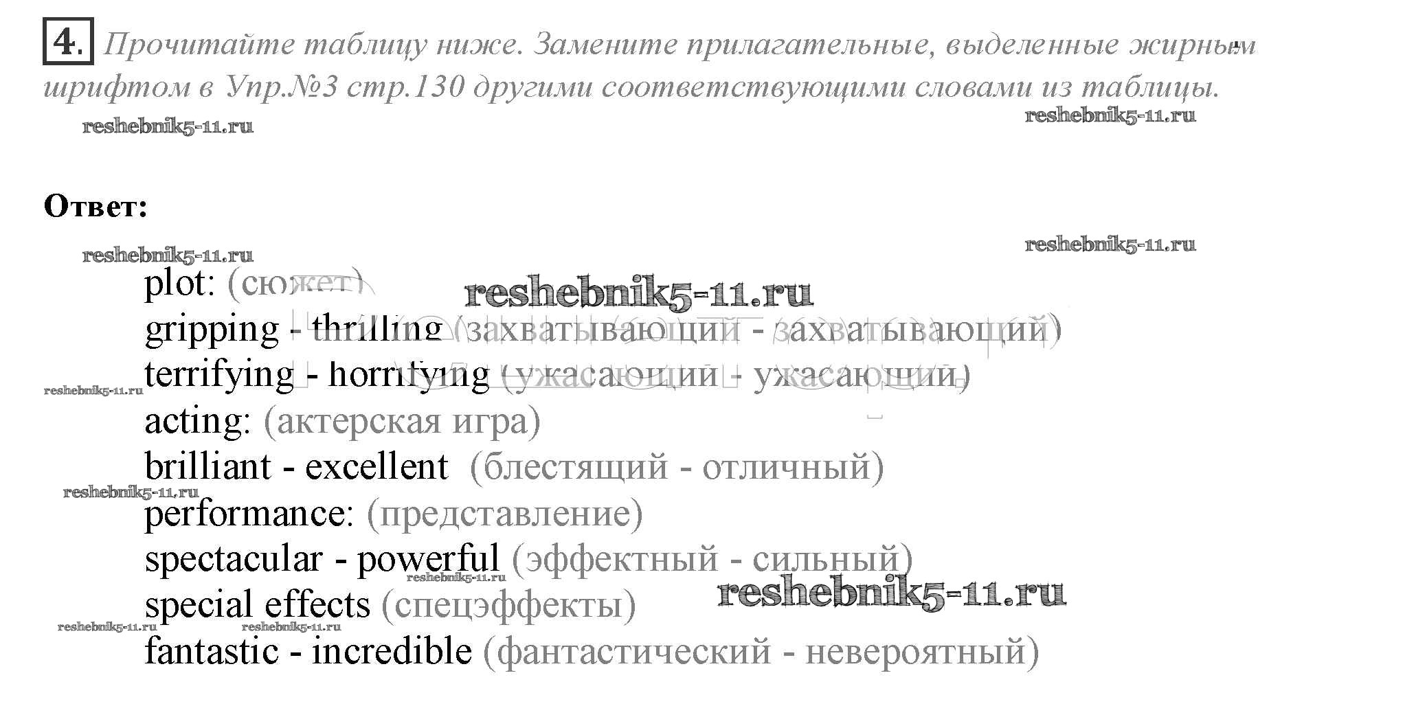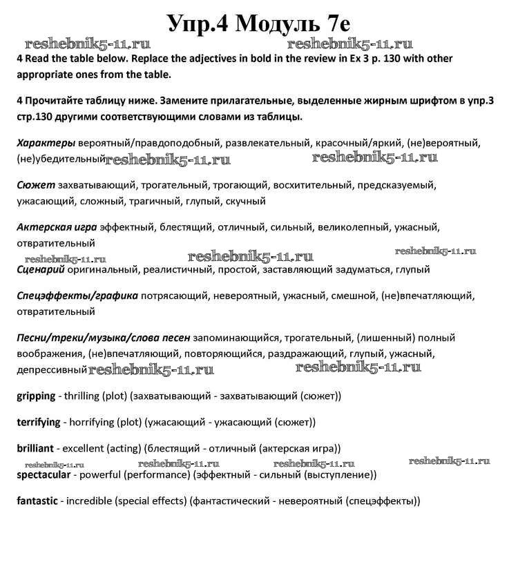 Готовая домашняя работа с ответами по Английскому языку за 10 класс Афанасьева, Дули, Михеева, Оби, Эванс Учебник Spotlight Просвещение 2015 ФГОС - Часть 7e 4